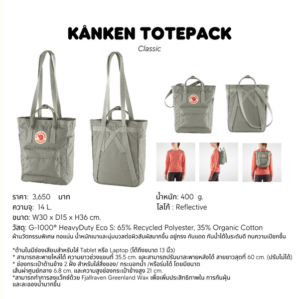 Kanken Totepack Classic กระเป๋า Tote ชิคๆ ทรงอมตะตลอดกาล ที่มีความยูนีค ฟังก์ชั่นเริ่ด ใช้งานได้หลากหลายสถานการณ์ ไม่ว่าจะสะพายไหล่ หรือเอามาสะพายหลัง ก็มีดีไซด์เก๋ไก๋ และคงทนความคลาสิคไปไม่แพ้เป้ Kanken ด้วยรูปทรงของกระเป๋า Tote Bag ไม่ว่าจะเลือกหยิบมามิกซ์แอนด์แมทช์กับลุคไหน ก็ง่ายและเข้ากันไปได้หมดทุกลุคทุกวัน บอกเลยว่าใบเดียว จุใจ เอาอยู่ ❗